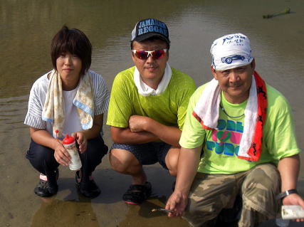人生4回目のマテ貝捕獲に3人で行ってきました。17:00干潮のため前回同様”いの”で待ち合わせ13:00にレストパークを出発!今回は,須崎の井上さんに教わったポイント(愛媛)で勝負の予定でしたがザコ師匠が「どうしてももう一度師匠と会いたい」との強い要望で急きょ有明ファミリーパークキャンプ場で勝負することとなりました。そして高速に乗り現場である有明ファミリーキャンプ場へ到着したのは14:30くらいでした。海を望むと師匠に教わったいつもの9番のポイントは,いつでも攻めることのできる状態だったので早速貝堀りを始めたものの二週間前と違いなかなか穴を発見することができません。気温は30℃ゆうに超え一同に疲れが見え始めたころ背中から聞き覚えのある声が・・・。「取れますか?」と師匠登場!待ってましたとばかりに一同「お久しぶりです本日もよろしくお願いします師匠!」といつものごとくバケツだけ持ってついて行き師匠が砂を掘り穴を見つけてくれ私達はそれに塩を入れ出てきたマテ貝を捕獲するというやり方で取れるは取れるは・・・。3人でも手が足りず”借りた猫の手も忙しい”とはこのようなことを言うのでしょう!あっという間にまたまた三桁を達成。私たちも同じところを掘っていたにもかかわらず不思議なことに師匠が掘ったところには,3回ほど掻いただけで必ず複数の穴が現れるのに対し私たちはといえば鍬を振り息が切れるだけで穴が出る確率は師匠の10%くらいでした。さすが師匠!そして16:00「私は帰るのであとは頑張りなさい。また9月になり涼しくなった頃来なさい!」と言い残しじょーれんを担ぎ砂浜を颯爽と後にしました。今回も師匠がいなかったらと思うと・・・。師匠ありがとうございました。 |