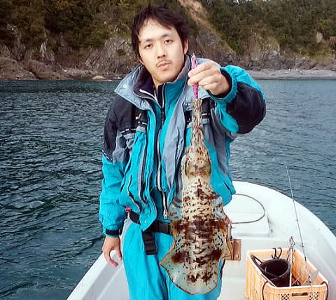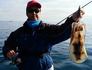 毎度おなじみの川上水産でボートをレンタルし9時に出撃!今回は,夕刻客人があるので鍋の魚を狙うためいつもの順番を少し変更し久礼方面にボートを走らせタイラバをマキマキしてみました。朝一からまったく反応なし!ポイントの選定が悪いのか潮が悪いのか竿から手前が悪いのか?何一つ生命反応なし!1時間ほどやったところでしんがアカハタを一匹仕留めただけで,そうこうしていると風が強くなり白波が立ち始めタイラバができない状態となってきたので潮をまともにかぶりながらやっとに事で湾内に帰還!サビキで鯵を狙うことにしました。しかしながらこれまた最悪の状態でサビキにすら当たりなし!14時まで2時間ほどやってみるもしんに35cmの大アジが釣れただけでした。これでは何ともならんと最後にイカ狙いでまだ風は吹いていましたが沖に出て風裏でしゃくってみるとしんが200gをゲットしたのに続き今度は,今年一番の大物1.6kg(写真)と1.3kgを立て続けに仕留め何とかお土産はキープできましたがその後しんの快進撃はとどまることを知らず600g級を2杯追加し日も暮れ寒さが増してきたので納竿としました。私はというと写真撮影中に何とか500g級を1杯仕留め何とか完全ぼーずは免れました。 | |||||