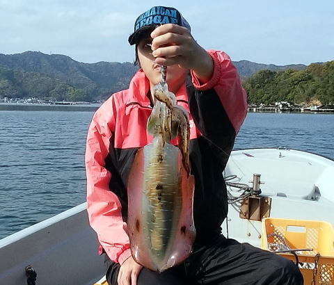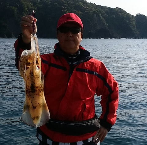 今年は,初旬から気温が低くなかなか釣りに行く気持ち煮られず重い腰を上げたのが16日!潮も大きく天候も良く予想最高気温が18度とこの日を逃したらいつ行くんや!みたいな絶好の釣り日和に行ってきました。狙いは当然イカとタイ!クリスマスに行ってから情報収集もろくにせず川上水産に着いたのがいつもより少し早い8:30で他に予約を入れていた3組のお客も到着していない組もありいまいち釣れそうな感じはありませんが暖かいのだけがせめてもの救いと8:45には港を出船しました。!今日の予報も,波1.5mのち2mでしたが沖に出てみると波風なくタイラバ&ティップランには不向きながらシャローのエギングには良い状態でした。まず向かったのは前回キロオーバーを仕留めたイカポイント・・・。すると見たことのある先客のボートが1隻・・・。案の定ジロー丸でしたがとりあえずはスルーして他のポイントへ・・・。これが見事に功を奏ししんが1.65kgの良型を1投目にゲット!すかさずジロー丸にLINE(写真つき)を入れ合流!しかしその後は,ジロー丸が小型を5杯仕留めたのみで私たちは以降イカを釣ることはありませんでした。11:00からはタイラバに移行するも当たりすら出せず1日を終えてしまいました。1日通して気温も高く照り返しで顔はも真っ赤になり未だにひりひりしています。次頑張ります。 | |||||