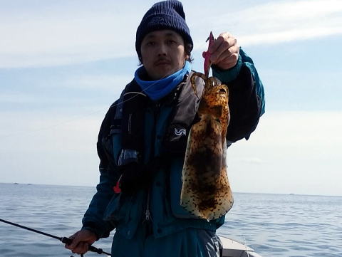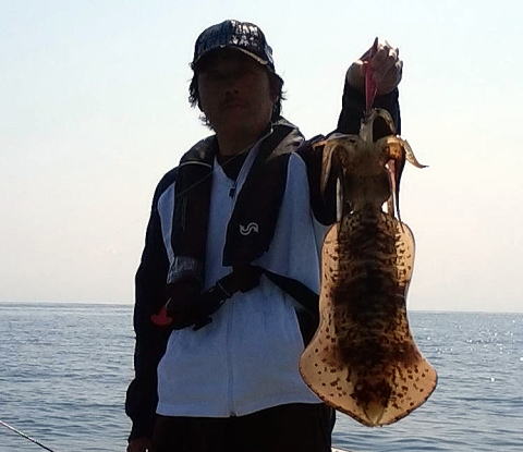 明日4/10には,剛世船長の土佐丸でのタイラバ釣行が決まっていたので本日は,エギング一本に絞りエギングロッドだけ持参しての釣行でした! 朝9時半に野見に到着後,レンタルボートに荷物を積み込み出船!10時にポイント到着しました。波風穏やかな中の第1投でしんが写真の1.7kgをゲットするとポイント移動し私も久しぶりのアオリイカをゲット!800gでした。その後昼前から急激に波風とも強まりなかなかのロデオ状態に突入するも風裏となる同じポイントを繰り返し流し私が1杯追加!しんは,5杯追加し二人の勝負は2対6に!(久々の善戦?)しかし14時からはさらに波風強まり耐え切れず湾内に避難!釣ったイカを締めながら流してみるもイカの当たりは皆無!しかし突然うれしいゲスト40cmのマハタを私がゲットし16時納竿! 本日は,久しぶりにイカを釣ることもできたしゲストもゲットできたし良しとしましょう! |