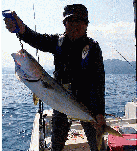 満を持して4日前に決まった釣行!朝6時に起きた時には,前日の釣行疲れで身体はバキバキ心もイマイチ前向きにならない状況下,老体にムチ打ち剛世船長の待つ須崎へ・・・。7時集合と言ってたのに船長は4時起きで私が到着した時には桟橋に船を付けて待ちくたびれた様子でした・・・。すぐに荷物を積み込み剛世船長が最近大きなサワラを釣った(釣っただけでタモみ入れに失敗し自動リリース)ポイントに直行!まず始めは真鯛狙いで前回真鯛を釣ったジグを投入・・・反応なし!その後は,タイラバ・インチク・ジグとローテーションしていると9時ごろ私の竿にいきなりの当たりが・・・大物狙いの仕掛けだったので難なく上がってきたのは,4キロ弱のハマチでした。その後10時にしんのタイラバ仕掛けに4.3kgのハマチ?メジロ?が10分の格闘の末あがってきました。その後は,当たりも無くなるといつものごとく悪口の言い合い!罵り合いで時間を潰していると船長のタイラバに40cm級のネイリがHIT!難なくゲットしその後は,エソが3匹釣れただけで夕まづめを迎えた。すると船長のタイラバにひったくるような青物独特の当たりが・・・。青物を確信し強引に引き上げると本日最大5.3kgのメジロでした。狙いの真鯛に出会うことなく16時に納竿となりました。午前中は,無風でベタ凪,午後に入ってからは風が強くなりましたが釣りができないほどではありませんでした。 | |||||