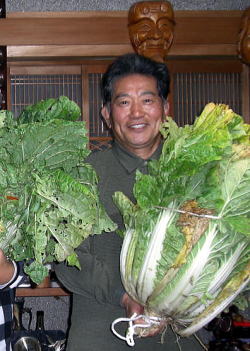 2009年も押し詰まった12月14日(月)仁淀川町の”白菜の申し子かず”宅鳳凰の間で第14回白菜カップが開催された。今年の参加者は昨年と同じ三人(2年ぶりの覇権奪回を狙う白菜のカズ(68)・近年めっきり力の衰えが隠せず精彩を欠く初代王者無農薬有機栽培のまさ(60)・昨年の新記録での優勝で鼻たっか高かの三要素のヤス(48))。結果は,前々年王者の”かず”が昨年を大きく上回る歴代自己2位の9.0kgを出品すると,近年低迷から脱せない”まさ”も自己2位に相当する7.0kgで健闘を見せるものの前大会を大会記録で制し,好調の波に乗る”やす”が再び10kgオーバーを栽培し(10.0)kg連覇を達成した。2年連続で10kgオーバーを出品したやすはほぼ円熟期を迎えたといえるが,今後大会を盛り上げていく観点からも一層他のメンバーの奮起が不可欠と言えよう!
