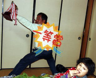第16回白菜カップは,2011.12.19仁淀川町の”無農薬有機栽培のまさ”宅にて”白菜のかず”,”3要素のやす”の3名の自分だけが認める白菜家の参加の下,画も盛大にまた密かに開催されました。11月時点では断然”三要素のやす”有利が伝えられていましたが,前年最多タイとなる6回目の優勝を果たした”かず”,またまた近年不調から脱出できず最下位記録を更新中で引退もささやかれていた”まさ”も本年より真摯に取り組み始め近年にない三つ巴の戦いとなりふたを開けてみなければ分からない混戦となりました。先ず始め会場で待ちかまえる”まさ”のもとに,優勝カップを手にディフェンディングチャンピオンの”かず”が優勝を確信したかのような得意顔で現れました。