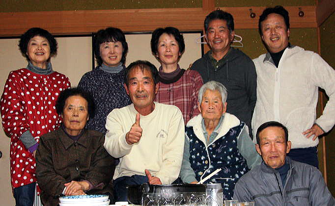 そして間もなく仕事を終え自慢の白菜を手にした”やす”が玄関先に並べられた二つの白菜の横に最後の白菜を並べ参加者全員勢揃い。いざ第16回大会の開幕となりました。