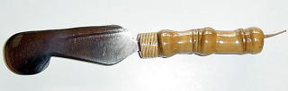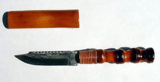 チヌを絞めるとき市販のナイフの柄がおれ,それに無理矢理,柄だけ差し替え,,鞘を作ったもの