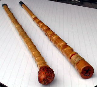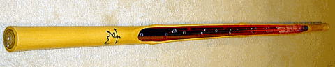 最近完成しただんご柄杓。柄は布袋竹の1本もので柄杓は,破竹を加工して漆塗りで仕上げたもの。