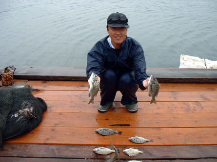 雨は降るし,寒いし,釣りに行ったことを大変後悔した1日でしたが3人とも小さいながらもそこそこの釣果で少しは救われました。全体的にチヌの喰いは良かったように思います。餌もアケミの丸貝,半貝,むき身,オキアミ,ボケと持参したすべての餌で釣れましたが特に丸貝の喰いが良かったように思います。その他に近くで2人チヌを狙ってましたがサイズも40クラスが上がったみたいで数もまずまずの釣果だったようです。餌取りは,特にアジが活発で打ち返しの時には必ず付いてあがってきました。定番のボラは特に水面付近で活発に団子にアタックしてきました。