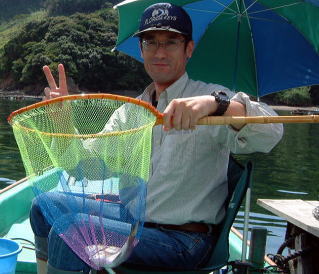 初めて自分で作ったタモでの初すくいは,今年の自身初チヌ30cm。初物尽くしでご機嫌のアッキー,ボラでなくて良かったね!