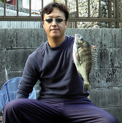 本日の最長寸34cmと33cmを仕留めたやすし(左)と32cm1匹を何とか仕留めご機嫌の井澤。しかし井澤にボラの数では,2対20の大差で破れてしまいました。(ボラ当たりに合わせ過ぎ,だからボラに爪を割られる羽目になる!:やすし談)その他の場所では四号筏も好調で10枚程度,中央の他のカセでも6枚上がってました。