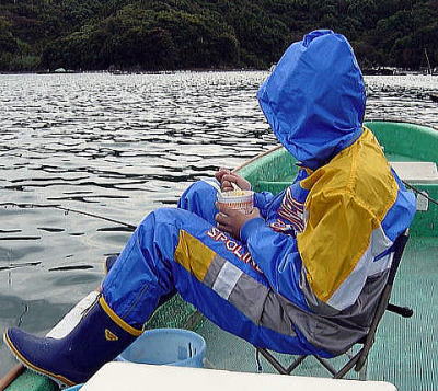 場所は,川上水産4号筏の裏のコワリ,団子には見向きもしなかったチヌが,コワリの下にブッコンだボケに3連発ヒット&ゲット・・・・・・しかし,朝から通算で2匹ロープ巻かれ取り逃がしてしまいました。