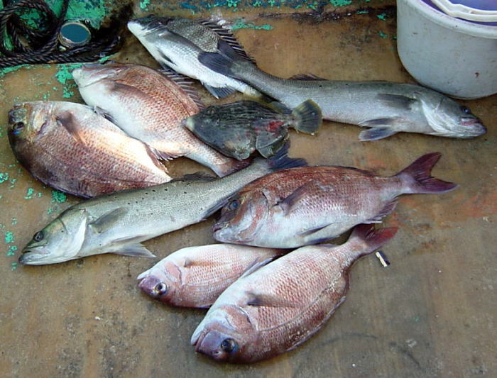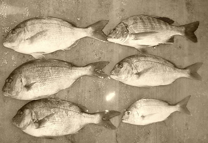 雨の予報でしたが過ごしやすい絶好の釣り日和となりましたが根性無しの私は,15:30分に納竿してしまいましたが,その時点前のカセ(3人)では,45センチクラスを5匹,絶好調の4号筏(人数不明)では8枚(最長寸40cmとのこと)が上がっていました。私の場所(いつものところ)は,脱走真鯛が活発でスカリに投げ込み損なったのを含め7尾(最長38cm)を逮捕しました。また,相変わらずスズキも食欲旺盛で本命のチヌは,正午に33cmを1枚あげるのがやっとでした。