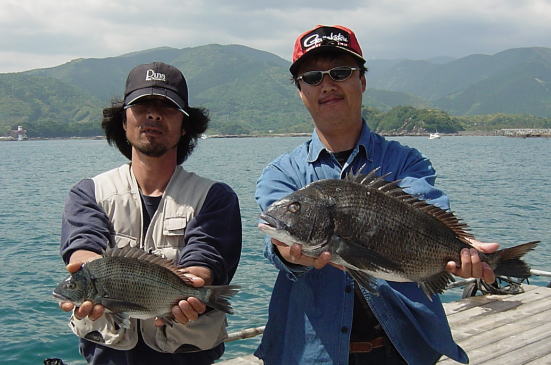 5月3.4日連続で竜串の国沢イカダでお世話になりました。初日は,2号に上がり釣果無し,2日目は,1号に上がり”やすひこ”が38cmを丸貝で仕留めると続き”やすし”がAM9:50にむき身で自信最長寸の57.5cmを仕留めました。