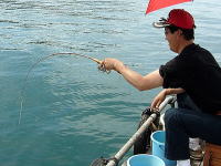 少し浮いたかと思うと今度は筏の下に潜り必死の抵抗。必死にそれをかわす。
