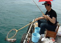 帰りチヌの胃の中を検証してみると,カニの足,コーン,サナギ(マルキュー瓶),サナギダンゴ(私の蒔いた寄せ餌),アケミの殻がぎっしり詰まってました。と言うことは筏の下に居着いたチヌと言うことになります。1日やってもこの1匹だけの当たりしかなかったのに(私の場所には餌取りの当たりもありませんでした。海底の岩礁の関係?)しかし考えてみるとこのクラスのチヌがこの下にはゴロゴロいるのではと思うと・・・・・・。