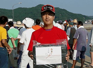 台風14号の接近で開催が危ぶまれましたが,当日は雲一つない晴天の恵まれました。しかしチヌの活性は今ひとつだったようですが(前日は好調),大会自体は超豪華賞品と多数の参加者(84人)で大変盛り上がりました。