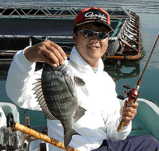 | 前日より北灘に乗り込み朝7時に出船(いつもよりかなり早い)し糸を垂れたのは7時半ごろでした。しかし釣れてあがってくるのはフグばかり,そして井澤に最初の本命(40cm)がきたのは9時近くなってからでした。それからは,真鯛の猛攻が激しく真鯛を釣ってしまうまで2時間以上かかりました。その後私が32cmをゲット井澤も45cmを追加しやっとチヌモードに入ったのが11時近くなってました。その後私が3枚(35〜40))を追加し二人あわせて6枚釣果でした。(私4枚井澤2枚) 全体的に底より少し浮いたところ(20cm位)で食ってきました。ボラもダンゴを程良く割ってくれたのですが真鯛の群が凄く苦労しました。しかしお土産はたくさんできました。 |