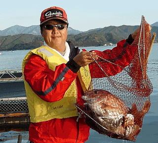 | スカリの中はほとんど真鯛でした! | 45cmのチヌにそこそこ満足!! | あまりにも大きすぎて右手に隠れてしまいました! |