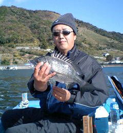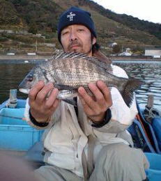 しかしその直後私が,42cmをサナギで追加しやっと弟子の背中が見えはじめ気合いが入ってきたのですが,14:00安彦が1枚を追加し5:3となかなか追いつけずほぼ勝負有りかと思い始めた16:00私が丸貝で掛けて上がってきたのは30cm級,ラインをもって引き抜こうと水を切った瞬間”チャポ”痛恨の針はずれでチヌは水中へと帰っていきました。これで勝負有り。17:00に納竿となりました。