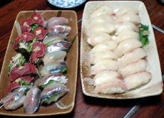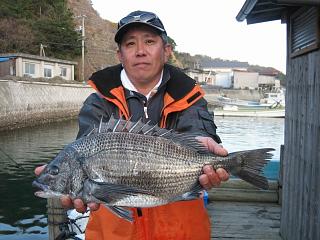 3月に入って最後の寒波?が襲来し上がり始めていた水温はいったん中休みし再び低下たようです。今回の釣行の場所として選択したのは,年なしを狙って北灘湾レンタルボート清家さん。最近海が荒れ釣果がない状態での挑戦とありメンバーのテンションも水温と同じく下がり気味,前日からうちへ居候していた井澤会長とたけとし君と佐川を出発したのが3/13朝4:00ジャスト,1時間ちょっと走って197号線県境(梼原町)のトンネルで気温が目に入った。記録計はなんと−3℃を表示,宇和島に通うようになっての最低を記録していましたが,霜が一面に降りていたこともあり昼間は風もなく穏やかで暖かな一日になるとこの時点では,疑っていませんでした。津島町に入っていつものコンビニで食料とビール・酎ハイを購入し,レンタルボート清家へ到着したのは,6:30くらいになってました。到着すると他の3組はすでに出船していていつもとおり社長出船?となりました。最初の釣座として選択したのは,すぐ目と鼻の先の正面のカセ。うねりと風はないもののとにかく寒い寒い,天気予報では,晴れのはずだったのですが雪の降りそうな空模様は,昼頃まで続き団子を練るのが大変苦痛で,また針を結ぶのも一苦労,カンテキの火とアルコールが心身の支えとなりました。やっと日差しも降り注ぎ暖かくなった正午,前回の釣行時好調だった国延沖コワリのロープに移動,その第一投目たけとし君の竿が大きくしなる。なかなか底を切れないまま魚は徐々に沖へと進む,やっと底を着るが敵も命がけなかなかの抵抗で浮いてこない。自作の新作竿を必死に操りながら”この竿イカン””滑る”と連呼しながらの攻防の末,浮いてきたのは,隣で釣っていた井澤会長も一目で年無しを確信するほどのお腹をパンパンにふくらしたきれいな魚体でありましたが,すかさずスケールをあてた井澤会長が首をひねる”よんじゅうきゅうてん?”その瞬間一気に場の空気は冷め一同意気消沈。(シュン)それから真鯛と大アジ(30cm以上)の入れ喰い状態となるや形を潜めていたこの人が俄然張り切りだした。そう”サビキの神様”こと井澤会長,いきなりサビキ竿を手に蔓延の笑でアジを釣るは釣るはでその歓喜の雄叫びがやむのに1時間程要しました。そしてやっと14:30私に本命が・・・引ったくるような当たりで30cm級がきて何とかボーズを免れました。やっと追いついたとホットするまもなく本日絶好調のたけとし君が61cmの真鯛に続き本命を2枚(28・30cm)仕留め勝負あり。本日は,数・型とも完敗でした。そして当たりも消えた17:00過ぎ納竿としました。クーラーを真っ赤な鯛と大アジで埋め尽くした井澤会長が一言。”自分で竿を作るくらいの人じゃないとチヌは釣れん!1日中マメにできん!!”とボーズの談を述べられてましたが違います。間違いなくサビキ釣りのせいです。私が思うにこの釣りは,集中力と判断力をいかに釣れる時間帯(時合)に発揮できるかだと思います。暖冬のせいなのかのっこみの時期,釣れる場所が例年とはかなり異なっているようです。次は月末にでも行きたいものです。