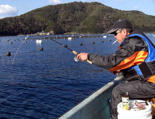 1年ぶりの【くまさか】挨拶を済ませ近況を聞くと昨日は強風のため釣果が思わしくなかったようですが釣り人さえ入れば年無しが出ない日はないとのことでした。そしてそろそろノッコミの大群が押し寄せる予感のある競艇場で勝負すれば大爆釣の予感があるとのことでしたが,3:30には,ソフトの練習のため上がらなくてはならなかったのでここは手堅く安全に確率の高い川西ポイント(船着き場より湾奥へ少し行ったビン玉)を選択しました。(根性無し!)そして大量の荷物をボートに積み込み6:30船着き場を出発しポイントにカセを掛けFishing