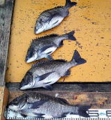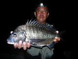 小潮 | 不明 | 初めての大海いつもと勝手が違いポイントもわからないまま港を出て左側のコワリで1日やってみました。午前中当たりもなくガシラと30cm級の真鯛がぽつぽつ釣れるだけ、餌とりもフグがラインをかじる程度で活性もイマイチのためコワリを転々としながらここを最後と決めダンゴを一気に投入し勝負に出たのが11:30頃。その後当たりが出始めたのが12:30を廻った頃で真鯛とヘダイが当たるようになり,そのどさくさに紛れ本命が2枚私の餌だけを喰いました。 | ![]() |