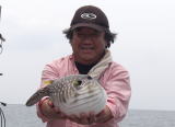 中潮 | 19.4 | と今年3回目の直接対決!結果は,2:0でたけとし君の勝利となってしまいました(気分悪)。湾口は,潮はかなりの早さで動く上にラインになにやらわからない物質が付着しガイドのアナが詰まる始末,国延沖は,少し潮の色が緑っぽくなっていました。魚の活性も低く時よりフグとチャリコが当たって来るくらいでした。しかし他には釣果をあげていた釣り人も居たので結局は,竿から手前の問題のようです。勝負に敗れるわ,おまけに久々のボーズを喰らい”最悪” しかし私的には,自分が釣るより一緒に釣行した人が釣って隣で大喜びしている姿を見ている方がうれしいです。(大嘘) |