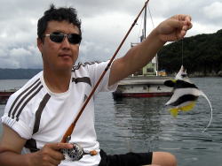 8:00佐川町を3人(たけとし君・しん)で出発途中窪川のコンビニでコーンを購入し,中村フィッシングで魚のえさ,宿毛のローソンで自分たちのえさを購入して一路,宿毛藻津フィッシング(松沢商店)へと車を走らせ順調に11:00前には到着しました。前日は誰も釣り人が入っておらずまたアコヤでの年なしは,,今のところあがっていないとのことで当然今年もアコヤ貝での一番目をもくろみ3号筏へ上がったのは11:30くらいになっていたでしょうか。筏には先客で香川の方が釣座を構えておられ,なんと年なしも1枚仕留められていました。そして私たちも釣座を構え(たけとし君が北の端,私がその隣へそしてしんが西向きに)釣り開始となりました。