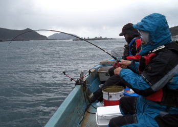 向かったのは,久しぶりの宇和島市津島町レンタルボート清家,たけとし君がわざわざ佐川まで迎えに来てくれ佐川を415に出発し愛媛県→高知県→愛媛県と通過し,津島町のローソンPLUSについたのが6:45でした。車を降りた瞬間ドアが風で空きづらいくらいの強風と同時に掻き曇った空からは水滴も落ち始めました。出船出れるか不安になりながらも買い物を済ませ(今回は、ビールはやめカップヌードルにしました)7:00ちょうどにR清家に到着したのですが駐車場には車もなく人っ子一人見えませんでした。少ししてから清家さんが現れ今日は,わたし達だけとのことで海は貸切ですが少し不安を感じつつもボートに荷物を積み替え数日前56cmが上がった中央のコワリにカセを付け糸を垂れたのは7:30を少し廻っていました。隣では,私が車を洗いワックスをかけたのでこんな天候になったとぶつぶつたけとし君が文句を垂れていましたがいつものごとく右から左へ受け流し糸を垂れました。この時は,うねりと寒い強風は吹き付けていましたが後ろからだったので何とかなりそうな感じでした・・・。