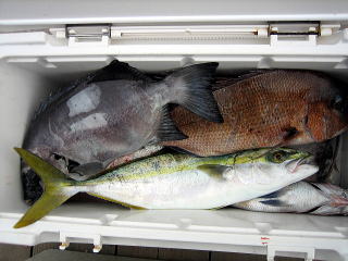 今回の釣果:真鯛13枚 石鯛1枚 ヤズ1本 アナゴ1本