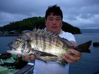 | 第10位 53.0cm | 釣 人 : おさきひろみち 年月日 : 平成20年9月21日 潮 : 小潮 場 所 : 国延沖コワリ エ サ : オキアミボイル 竿 : 也寸志作1.55m リール : バイキング筏44 ライン : 3号 針 : 速手チヌ4号 現 認 : かたおかやすし 釣 法 :ダンゴ釣り 渡船店:レンタルボート清家 |