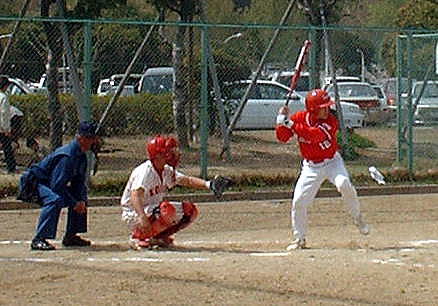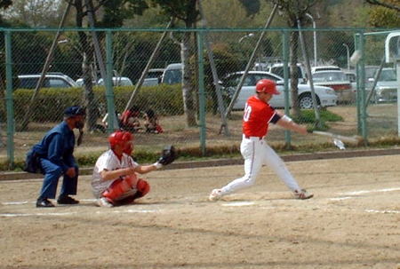 一方攻撃は,2回表も三者凡退でノーヒットノーランの心配が頭をかすめ始めた三回二死九番のりお(監督)五三歳がライト前ヒットで出塁し周りを驚かせた。