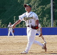 こちらも立ち上がりの悪いともゆきが1回いきなり先制を許す。しかしその後は,最後の打者に許した一四球のみと制球が安定するとともにスライダーも切れ,今年一番の出来で昨年春の社会人大会の借りを返した。