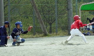 ”先攻を取ってこい”というチームの意向を無にしてコイントスに負けたキャプテン修二。しかし今までの2試合と違ったのは1番”たかひろ”がバントヒットで出塁し呪縛から解き放たれると”打つわ打つわ”4:1とリード広げ楽勝ムードが漂い始めた3回表二死満塁から相手の放った右前打が大きくイレギュラーし本塁打となり逆に2点を追う展開となる。その後も追加点を与え3点ビハインドで迎えた最終回本日絶好調の”しゅうじ”が中前打すると続く”つよし”も右前打で続き”たかし”四球で無死満塁,久直のセンターゴロで1点を返しなおも一死1・3塁,1番”たかひろ”の打ったライト線の当たりが本塁打となりサヨナラ勝ちを納めた。完投の”ともゆき”に今シーズン2勝目が転がり込んだ。