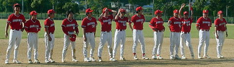 攻めに攻めまくった試合ながら得点は4回裏のみ,先頭のたかおが四球で出塁すると7番ともゆきがレフト前に落とし続く8番たいちのバントが3塁内野安打になり無死満塁。続く9番たかみちの痛烈な当たりが投ゴロとなり1−2−3のダブルプレーとなりチャンスが潰えたかに見えた。しかしたかひろが四球を選び再び満塁,続く好調2番つよしが左中間にしぶとく2塁打し走者を一掃し3点, 続くやすしがライトオーバーの3塁打で4点目をあげた。