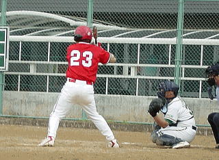 初回,久しぶりに無得点で見事な立ち上がりを見せた大輔(引退がかかっていたので頑張った?)は,2回も押さえ完封ペースかと思わせた。しかし3回裏に捕まる。無死からエラーで出したランナー(2進)を3塁に送られ,追い込んで決めにいったドロップを中越えに2ランされ先制される。その裏先頭の大地がこれまた中越えに滞空時間の長い特大の1発で追う。一死後エラーで出塁したホビットを也寸志が送り,久直が粘った末得意のインハイを中前にはじき返し,ホビットが生還し同点とする。しかしその裏タイムリーで1点を失い迎えた4回表,1番てるてるがバント安打で出塁,厚男の五ゴロの間に2進,賢聖のたたきつけた打球が三遊間を破り一死1・3塁で本日絶好調の大地が三振し二死となりいやな雰囲気が漂い始めたが,この男がやってくれました。五番大輔は,いつもなら初球を狙っていくはずなのに二球連続で見送りこれは何か?をたくらんでいるとベンチで話した瞬間,相手投手の投じた三球目のチェンジアップ(相手の握りで完全に球種を読んでいた)を見事左中間に運びそれが3ランとなり2点のリードを奪う。しかしまたまたその裏特大の2ラン・ソロなどで4点を奪われ逆に2点のビハインドとなる。6回表に相手のエラーで1点を返すがそれまで,7回も二死1・2塁と粘るが也寸志が1ゴロに倒れ万事休す,前回完全に押さえ込まれた伊藤投手を攻略しただけに残念な負戦となってしまった。