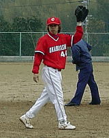 先発大輔は,いつもの如く先制点を与えてしまう一回1番打者を出すと二死は取るものの4番打者に内野安打され先制点を許してしまう。その裏二死からの友幸の左中間への本塁打ですかさず同点とするが,2回表も二死から内野安打され二点目を献上する。その後は要所を押さえるも6回表二死からのつまらない死球をきっかけに4点を献上した。その裏大輔と賢聖の本塁打で1点差に詰め寄ったがここまで・・・・,無情の時間切れで万事休す。今回も先取点を許してしまったがやっとチーム全体で粘れるようになってきたのは収穫,できれば先制点を取ってうちのペースで試合を進めていけばもっともっと点は取れるはず,膿は全て出ました来週の試合は快勝で飾りましょう。