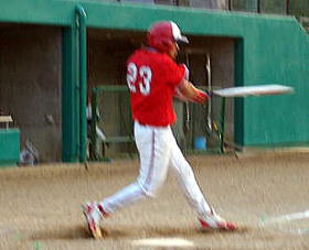 3点ビハインドで迎えた4回裏,先頭の「あつお」が三振。続く代打「まさあき」も三振に倒れ二死。続く「たかひろ」も粘った末遊ゴロに倒れ攻撃終了。