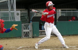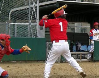 3回表一死1・2塁 5番晴彦が左越えに先制の2点二塁打を放つ!