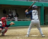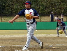 | ・先頭の晴彦がスイングアウト!2番末永が見逃しの三振に倒れ,続く3番剛世も一飛に倒れ三者凡退。 |