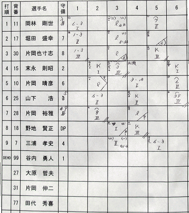 7月27日(日)朝から大ボケをかまされる。中学生の三男が野球の練習に行こうと着替えの途中”ストッキングがない!”と大騒ぎをしているではないか!こちらも試合の準備をしていてそれどころではない!しかしふと三男を見てみると少し違和感?がじっくり見てみてびっくり左足のふくらはぎが異常に”太い”そう片足に2枚重ねてはいてました(アホ)!そうこうしているとお迎えのたけとし君が到着!一路野市へと8時少し前に出発しました。イヤー暑い1日やったです。6月末の予定が雨で延期になった今回の全日本壮年の高知県予選,会場も春野から野市へと変更になりました。野市へ着き車から降りた瞬間耳が割れんばかりの真夏の象徴クマゼミの歓迎(瞬間タケトシ君が”うるさい”と叫ぶがゼミは泣きやまず黙ったのは周りの若いメンバーでしたとさ。お後がよろしいようで・・・!)9:00前にはほとんどの選手が到着してました。見てみれば選手たちの車がいつものより心持小さいでは・・・そうです原油価格高騰によるガソリン値上げの影響で軽四で来る選手が多数でどこの家庭も直撃を免れることはできません。一般住民は,生活しにくい時代となってきましたこの現状を誰にお願いすれば打破できるのかそれだけでも教えてほしいものです。そういえば8月より再び6円程度ガソリン価格が上がるとか・・・車を買い替えるにはもっとお金がかかるしかといって乗らないわけにはいかずこの価格が1年以上続くようなら高知とくに田舎のほうは大変なことになると思います。もうなっているのかもしれませんが・・・まー明るい話題としてはまもなく開幕する北京オリンピック!金メダルが確実そうなのは女子レスリング金メダルが取れそうなのが水泳男子平泳ぎと女子マラソンそしてメダルが近いのが野球・柔道・ハンマー投げ当たりでしょうjか?そうそう今回を最後に公式競技から外れる女子ソフトには是非とも頑張ってもっらいたいと思います。(おまえたちもがんばれよ!)そうなると3年後に廃止になる地上アナログ,これを機会に我が家でも地デジできれいな画面と美しい音で4年に一度のスポーツの祭典を見たいところですが,かみさん曰く”電波はあれどお金無し!”と許可はなかなか下りません。根気強く交渉を続けるしかありませんね・・・。それと星野ジャパンにも頑張って是非とも金メダルを持ち帰ってもらいたいですね!イチロー,松井秀喜,松坂抜きでも世界1になって日本の底力を誇示してください。野球と言えばタイガース強いですね優勝マジック44ですか?巨人も戦力が整って追撃に入りましたが時すでに遅しの感が強いですね,しかし諦めることはありません。クライマックスシリーズがあります!でも甲子園での阪神戦(ハンディ1)では,中日にしても巨人にしてもかなり厳しいものがありますが・・・勝負は下駄を履くまでわからないそうですから・・・