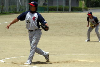 | 急用でひろまが欠場し14名で臨んだ今大会!開始前の手違いで救援予定だったルーキー武久が先発に・・・その影響がもろに出て制球が定まらず初回いきなり4点を与えてしまう。その後もバッテリーの呼吸が合わず3回で6点を奪われなおも二死満塁,ここで救援した勇人が後続を断ち7点目は何とか阻止するとその後4回・5回と無得点で切り抜けると6回表の攻撃は一死後3番剛世がしぶとく1・2塁間を破ると続く4番晴彦も本日2個目の四球で出塁し一死1・2塁と反撃体制を築くと5番也寸志のセーフティバントが決まり送球がそれる間に剛世が生還し1点を返しなおも1・3塁,途中から救援した6番勇人が追い込まれながらもファウルで粘り7球目を右前打し2点目を上げ2:6と迫るが後続が倒れ2点止まり。 その裏二死3塁から勇人が2ランを浴び再び6点差とされると最終回の攻撃の三者凡退に倒れ万事休す。今シーズンも泥沼の4連敗となりました。その後17時から深夜まで猛省したので次こそはやってくれそうな気がします? |