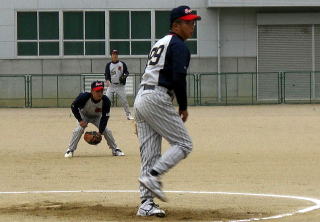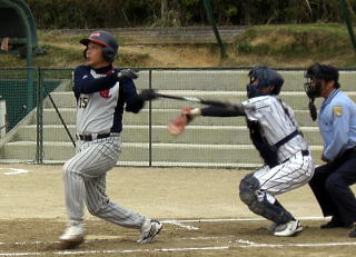7回一死満塁3番剛世(想像してごら〜ん。この打球がセンター前にゴロで抜けているシーンを・・・)(春野専用球場 秀喜撮影)