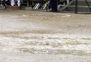 ホームベース付近はプールに・・・しかし帰りにしたのグランドを見てみたら大雨の中やってました・・・。
