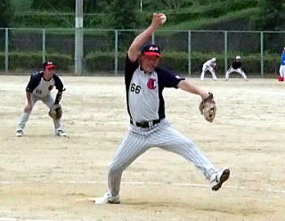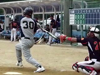 両チームチャンスがありながら得点できずに迎えた4回裏先頭の晴彦が倒れた1死から5番奥田が左前安打で出塁,続く繁隆の代打勇人も遊撃内野安打で続き1死1・2塁から7番也寸志の投前の高速回転の当たりが内野安打となり満塁で8番武久が追い込まれながらファウルで粘っていくうちにタイミングが合い6球目を左越えに目の覚めるようなあたりの本塁打で4点を先制すると続くひろまも負けてはなるものかと四球を選ひ出塁すると1番片浩が中飛に倒れるも2死から剛世のバント安打(エンドラン)と盗塁続く谷平の四球で満塁とし4番晴彦の押出しの四球で5点目を奪う。5回表は,猛暑の中疲れが見え始めた繁隆が安打と2四球で無死満塁のピンチを招くも押出しの死球の1点のみの失点に抑えると5回裏には繁隆の左前打と武久の四球で迎えた1死1・2塁からひろまが中前タイムリーを放ち6点目を挙げ今シーズン初勝利を揺るぎないものにした。