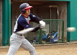 1回表先頭の晴彦が中前にきれいに弾き返すと2番久直が粘った末に四球を選びいきなり無死一二塁のチャンスを掴むと3番剛世の送りバントが安打となり無死満塁,続く也寸志の当たりは1塁正面を突き本塁ホースアウトで1死後5番谷平がしぶとく中前に運び2点を先制すると,続く尋喜が四球を選び再び満塁から勇人が左前打し3点目をあげるものの後続が倒れ3点止まり。その裏1死後2番が左前打3番が中前打で1死一二塁,4番が左前ポテンヒットで満塁5番の左越二塁打で2点を献上し尚も二三塁から6番が中前打し3点目7番の左越二塁打で2点を追加され計5点。8番四球で一二塁後9番の左前ポテンで1死満塁から頭部への死球で押出しの6点目。2番のとき捕逸で7点を奪われる。2回裏一死後2番ひさの左前打と3番剛世のバント安打で一二塁から也寸志の一ゴロの間に三塁に進むと5番谷平の3塁強襲安打で2点を返すが後続が倒れ2点止まり。ここで中学校の引っ越しを終えて駆け付けた片浩の姿が3塁側のスタンドに・・・スコアボードを見て目を白黒させてました。何とか逆転して片浩を次の試合に出場させようと3イニングを1四球のランナーだけで繁隆が抑えて迎えた4回表先頭の晴彦が左前に落として出塁すると2番ひさのとき相手投手の暴投で一気に3塁を陥れ無死三塁,ひさが四球と盗塁で無死二三塁から剛世の中犠飛で一点差と迫り尚も1死二塁,也寸志が中前打で一死一三塁と責め立て打席には本日4打点の谷平が入りムードは最高潮に・・・初球也寸志が盗塁を決め二三塁と一打逆転のチャンスに谷平の打球は三塁手の好捕(三直)にあい,ひさが飛出し併殺となりこの回1点止まり。結果的に最終回となった5回表二死後繁隆が中越二塁打で出塁するもギンザが遊飛に倒れ万事休す!