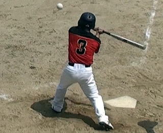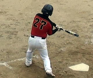 4回表先頭の勇二が右中間を破る三塁打を放つ