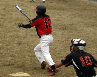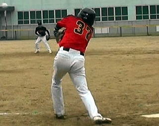 5回裏無死走者なし5番大輔右中間へ二塁打を放つ