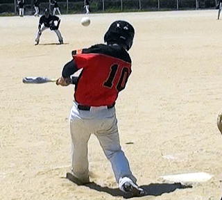 初めて無失点で切り抜け迎えた5回裏(この回2点取らなければコールド負け)先頭のかたこーが中前に弾き返し出塁!2番剛世のセーフティバントは,一塁手の好守で間一髪アウト(記録は犠打)続く3番也寸志は,2-2と追い込まれた後のドロップを左翼線に運び1死一三塁!続く晴彦の遊ゴロは相手失策を誘い満塁とチャンスが広がったが5番ギンザは,高めのボール球に手を出し捕飛に倒れ2死!続く繁隆も力ない二ゴロに打ち取られ万事休す!