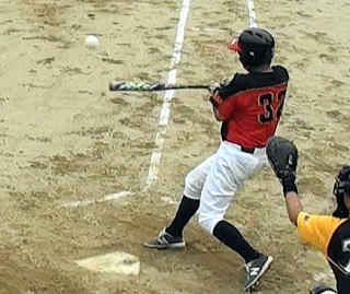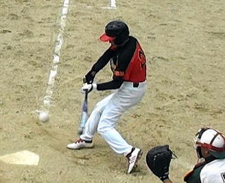 4回裏2死一人が中前打を放つ