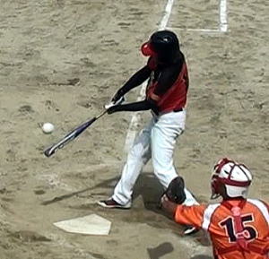 両投手の好投もあり0:0出迎えた3回表先頭の新川が右中間三塁打と続く剛世の四球と盗塁で無死二三塁と初回同様のチャンスをつかむも続く也寸志。かたこーが倒れるが5番たかしが四球を選び満塁から6番繁隆が中前に弾き返し二者生還し先制するも。その裏Japanの好守などで二死を取るも連打で一二塁から右中間へ二塁打され同点とされ続く打者にも左前打されが逆転を覚悟するも左翼新川の好返球で本塁寸前で阻止!何とか同点で踏ん張ると4回表先頭の松山が右翼手の頭上を襲う打球は右翼手のグラブに当たる二塁打となり無死二塁も後続のギンザ・新川倒れ2死三塁から2番剛世が左中間へ三塁打し勝ち越すと続く也寸志も右翼に二塁打しこの回2点を挙げる。